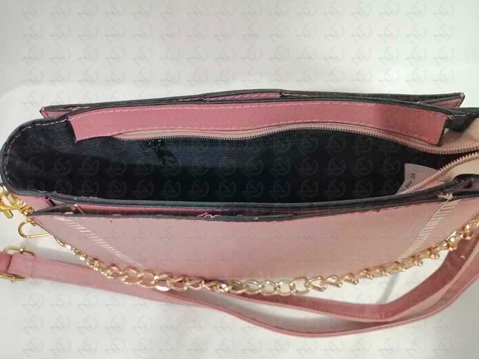 • Cuenta con tres compartimientos, uno al centro con cierre, otro por el frente, y otro en la parte posterior ambos con broche.