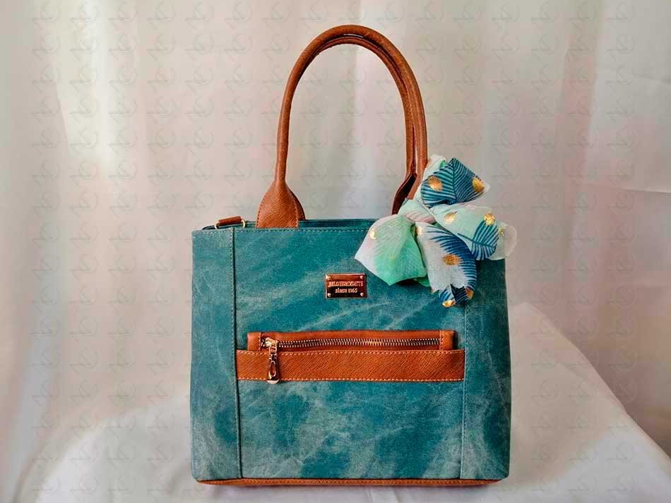 Esta hermosa bolsa satchel, es un diseño nacional, ideal para una mujer con estilo casual, además de ser muy combinable, cuenta con detalle de mascada en forma de moño, la cual favorece al realce de tu estilo es un complemento para lucir a la moda ya que puedes usarla con pantalón de mezclilla o también con pantalón o falda de vestir. Nunca olvides que una mujer segura de si misma se viste de fuerza y dignidad.